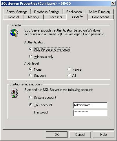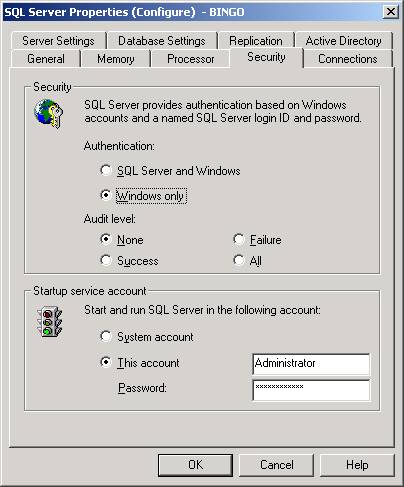 - Click the Security folder. You should now see the screen below with "Windows Only" set as the default authentication.